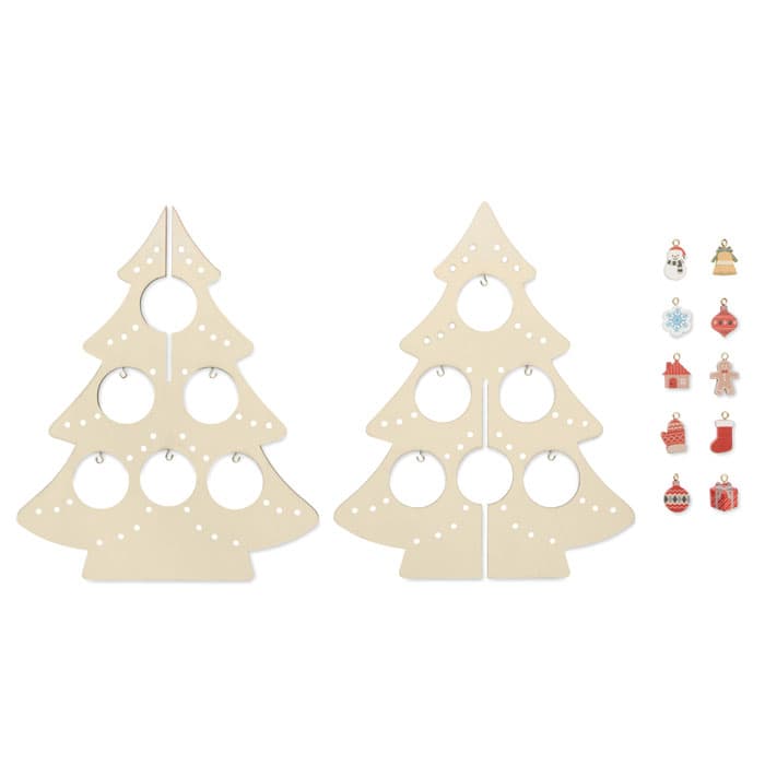 Multiplex kerstboom met 10 assorti ornamenten. Montage vereist.