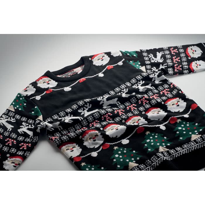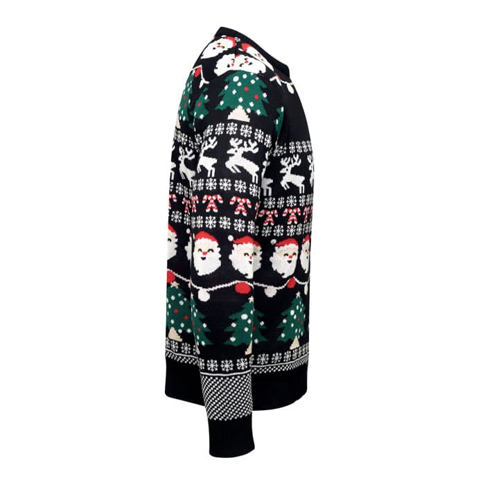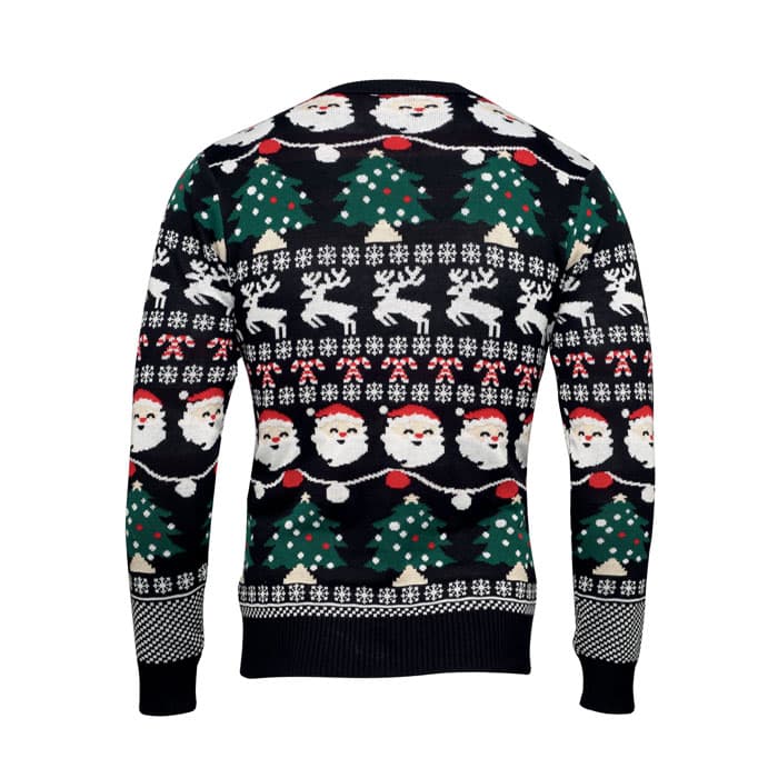 Kersttrui met 10 LED-lampjes van acryl. Maat: L/XL. Kom in stijl opdagen op je werk of bij het familiekerstdiner met deze feestelijke trui. Verwijderbaar batterijvak. Inclusief 2 CR2032 batterijen.