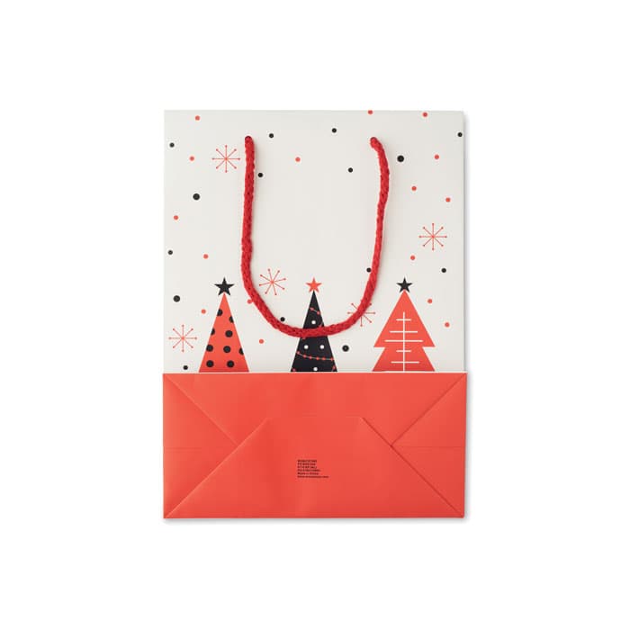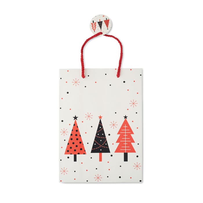 Papieren geschenktasje voor kerst (30% gerecycled) met label. Medium formaat. 150g/m² FSC®-certified | FSC MIX, P5.3, FSC-C213206