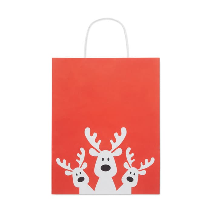 Papieren geschenktasje voor kerst (50% gerecycled). Medium formaat 90g/m². Gemaakt in de EU.