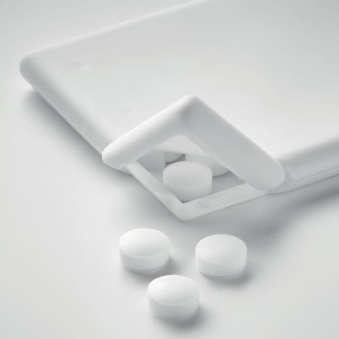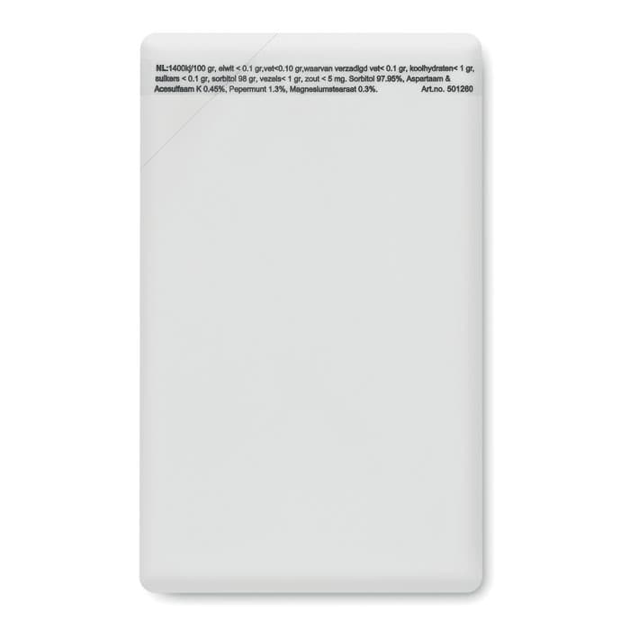 Pepermuntjesdispenser in vorm van een creditcard, 8 gram pepermuntjes.