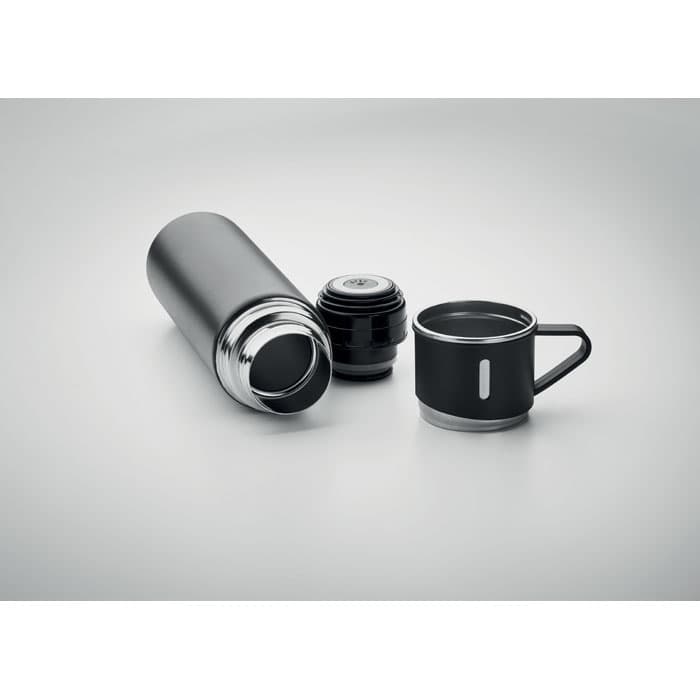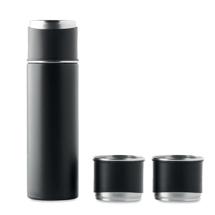 Set van roestvrijstalen dubbelwandige vacuümgeïsoleerde thermosfles met lekvrije deksel en 2 extra bekers. Capaciteit: fles - 420 ml, beker - 150 ml.