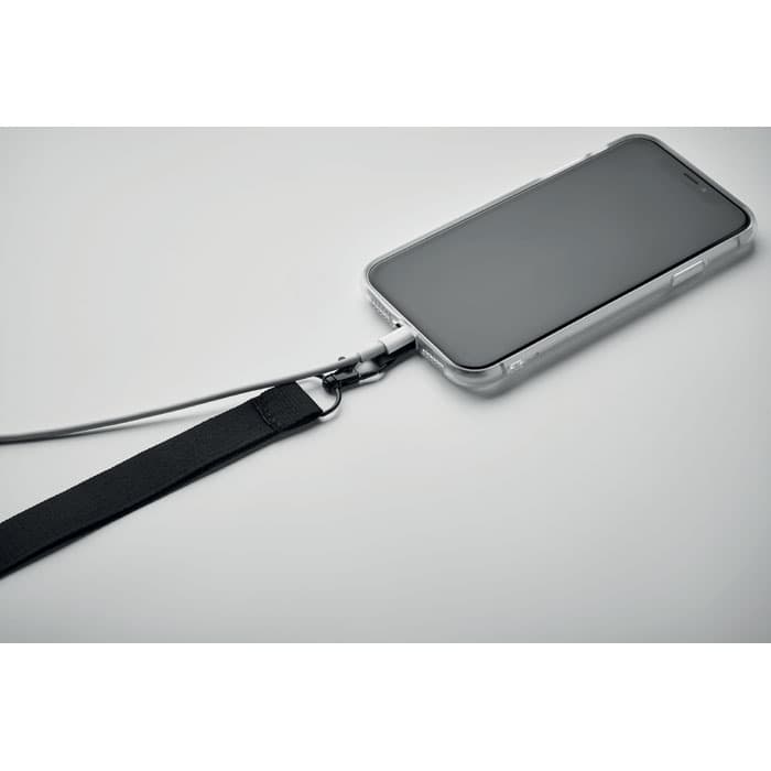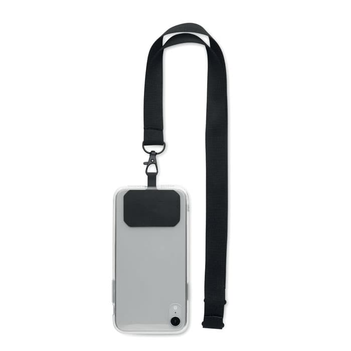 Lanyard van polyester met telefoonkoord en veiligheidsgesp. 2 cm.