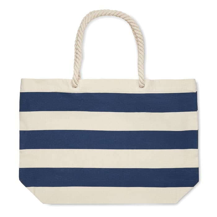Gestreepte strand- of boodschappentas van katoen met koordhandvat. 220 gr/m².