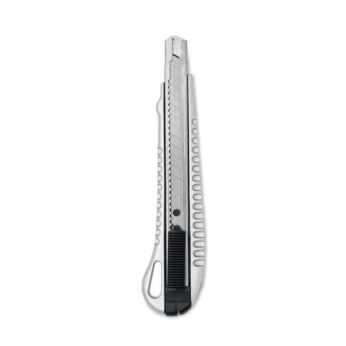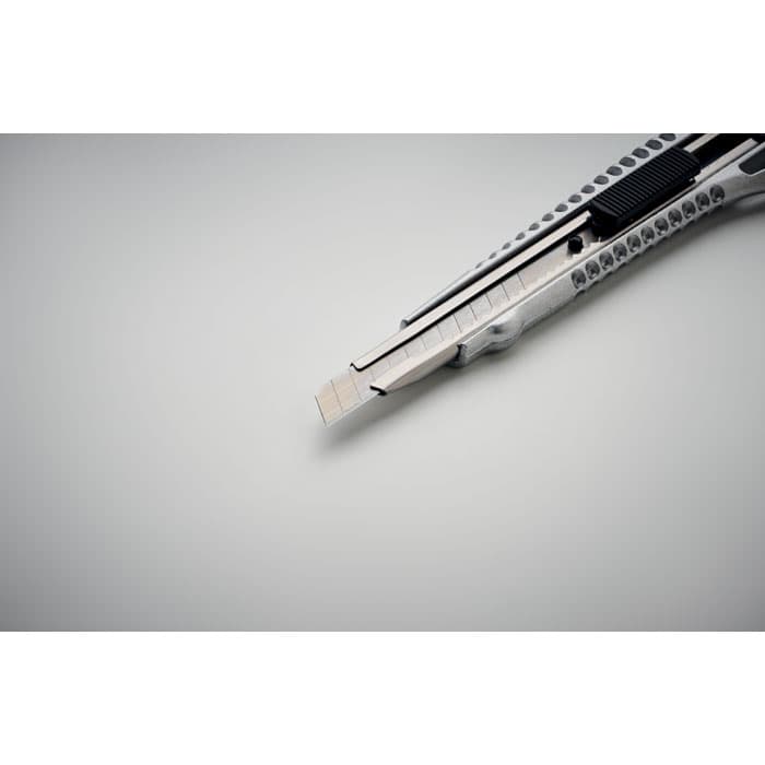 Aluminium intrekbaar mes met 13 koolstofstalen lemmeten.