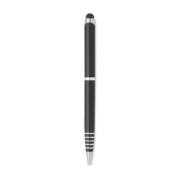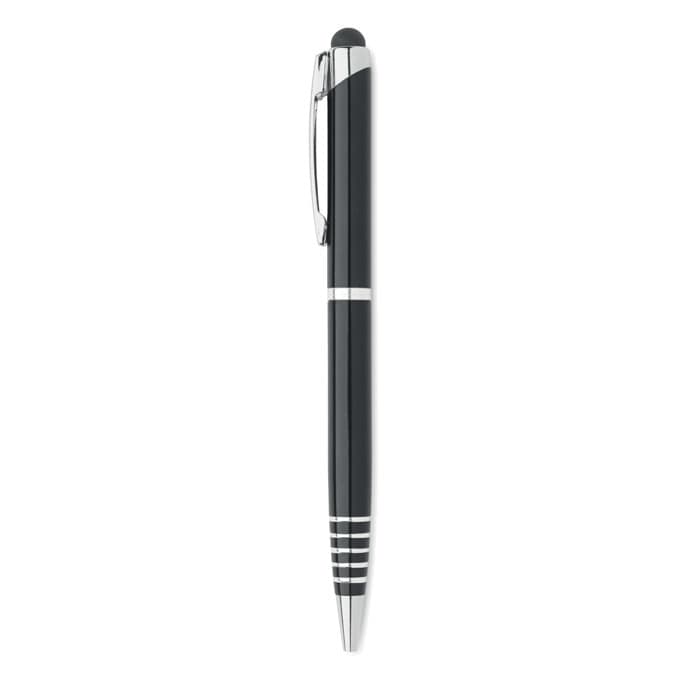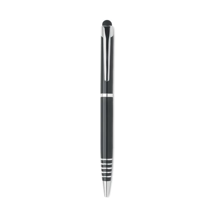 Balpen van gerecycled aluminium met stylus. Blauwe inkt.