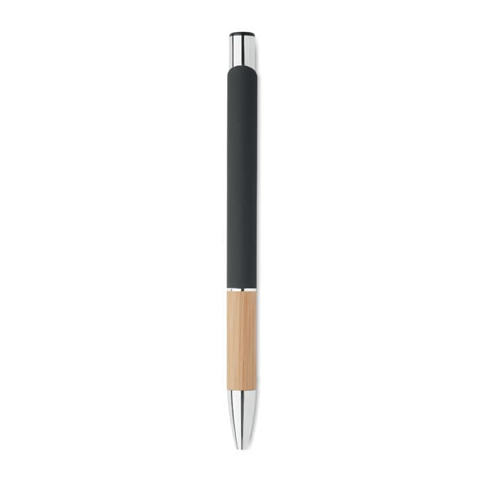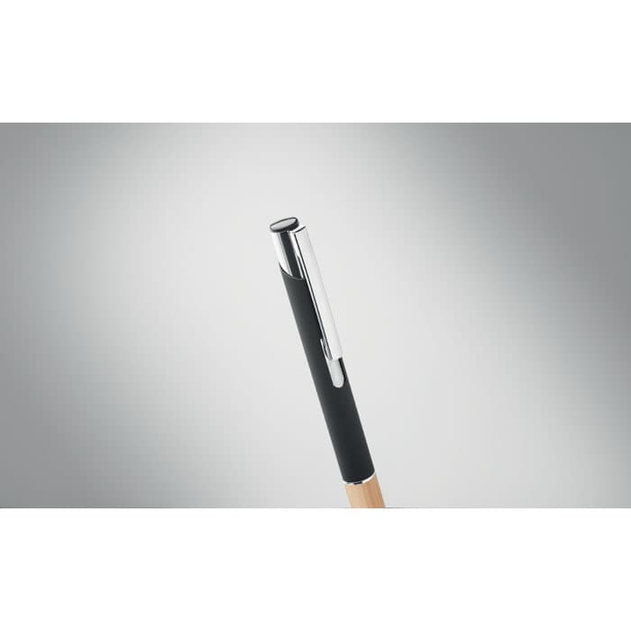 Pen met aluminium uiteinden en bamboe grip. Blauwe inkt.