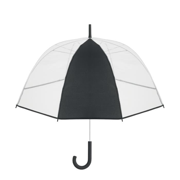 23 inch rechte paraplu van POE met bies en 1 paneel van polyester, geschikt voor bedrukken. Handmatig te openen. Glasvezel baleinen en frame. Verchroomde steel met plastic uiteinden. Handvat afgewerkt met rubber.