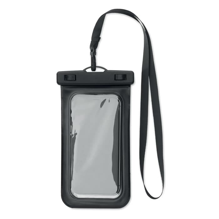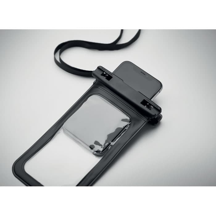 Waterdichte telefoonhoes met verstelbaar en afneembaar koord. Waterbestendigheidsklasse: IPX 8. Geschikt voor telefoons tot 6,7 inch.