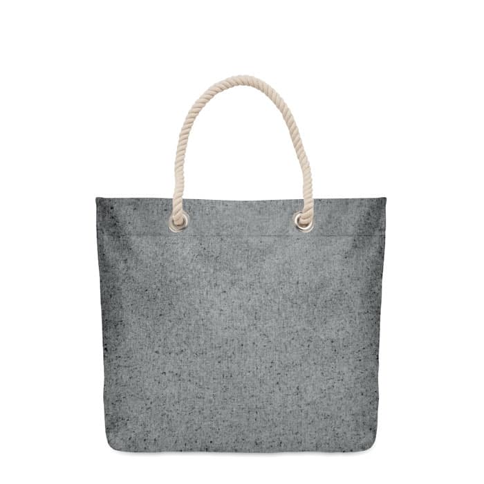 Strand- of boodschappentas van gerecycled katoen (80% gerecycled katoen, 20% gewoon katoen) met koordhengsels. 220 gr/m².