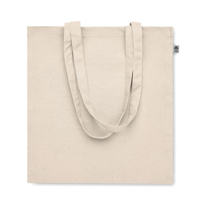 Boodschappentas van organisch katoen met lange hengsels en zijvouw. 220 gr/m².