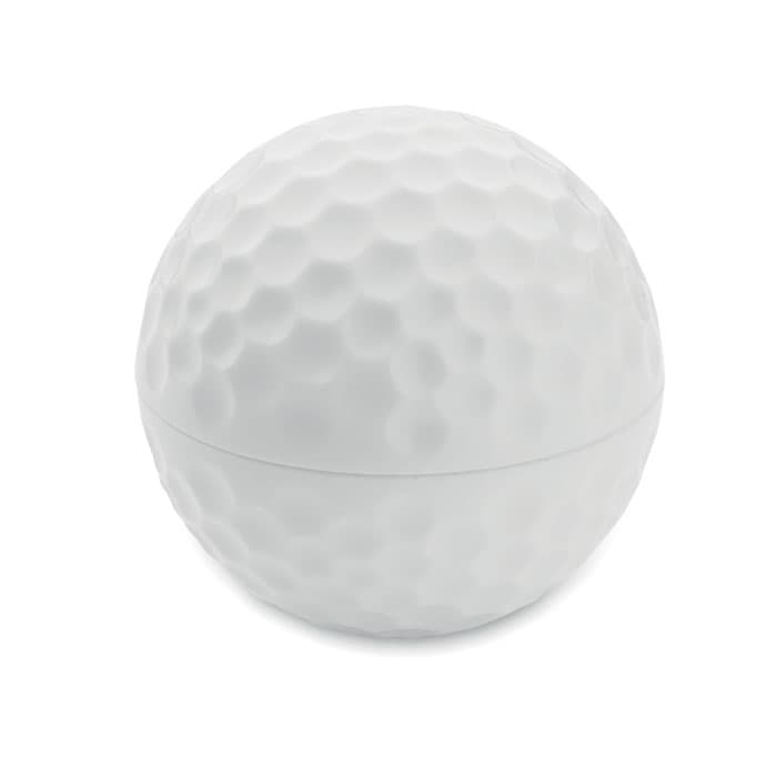 Lippenbalsem met doosje van ABS in de vorm van een golfbal. SPF10. Smaak: Vanille.