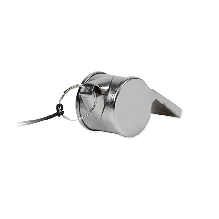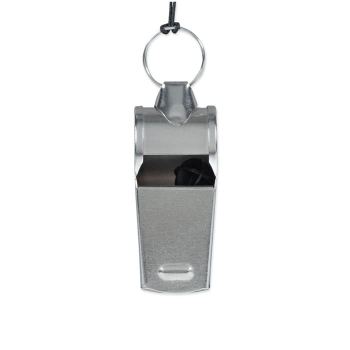 Metalen fluitje aan een koord met veiligheidssluiting.