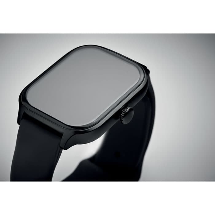 5.4 draadloos smartwatch gezondheidshorloge van zinklegering met siliconen band. LCD-display met aanraakscherm. Oplaadbare Li-Pol 180 mAh batterij. IPX7 waterdicht. Vereist een gratis app (HryFine beschikbaar in zowel iOS als Android).
