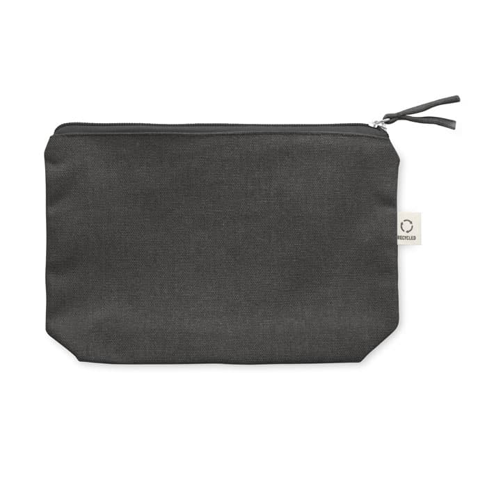 Toilettas van gerecyclede stof (70% gerecycled katoen en 30% RPET-polyester) met bijpassende ritstrekker. 320 gr/m². Dit artikel kan krimpen na het bedrukken.