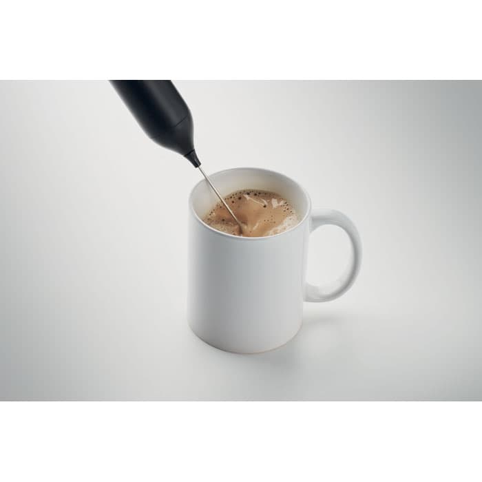 Handbediende elektrische melkopschuimer in ABS met matte afwerking. Ingebouwde batterij met een vermogen van 500 mAh. Oplaadbaar via USB Type-C (kabel inbegrepen). Snelheid: 10.000 rpm.
