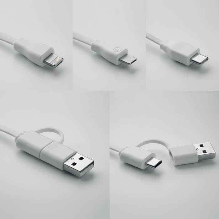 Bamboe sleutelhanger en telefoonstandaard met oplaadkabel. Ingang: 2-in-1 Type-C & Type-A. Uitgang: Type-C en micro-B (2 in 1 pin).