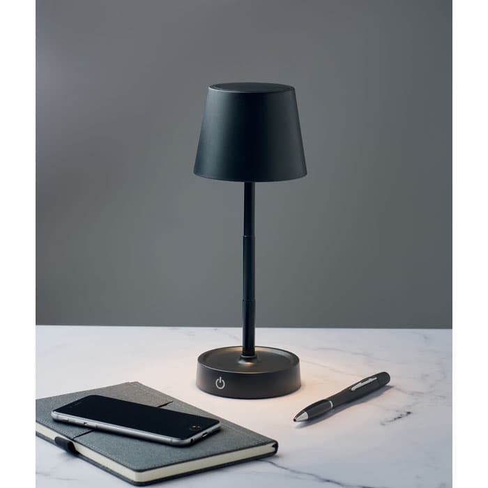 Uitschuifbare en oplaadbare USB tafellamp van ABS. Inclusief 12 LED-lampjes met instelbare lichtintensiteit en traploze dimfunctie. Ingebouwde batterij: 1200 mAh (6 uur gebruikstijd na volledig opgeladen). Inclusief USB Type-A naar Type-C oplaadkabel.