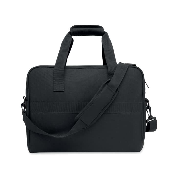 Handbagage reistas van 600D RPET met groot voorvak met rits, twee kleine zijvakken. Inclusief 15 inch laptopvak. Gewatteerde afneembare en verstelbare schouderriem. Trolleyhouder op achterkant.