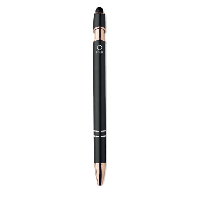 Stylus balpen van gerecycled aluminium met roségouden details. Blauwe inkt.