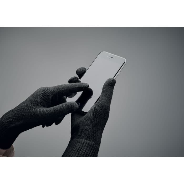 Gebreide handschoenen van zacht, rekbaar RPET-polyester met patch.