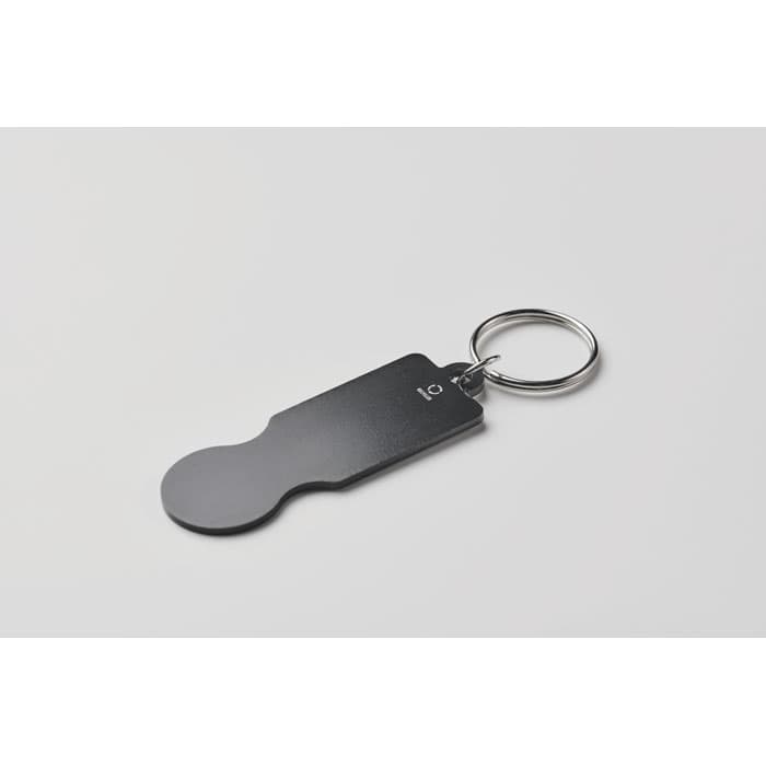 Sleutelhanger met winkelwagenmunt van gerecycled aluminium.
