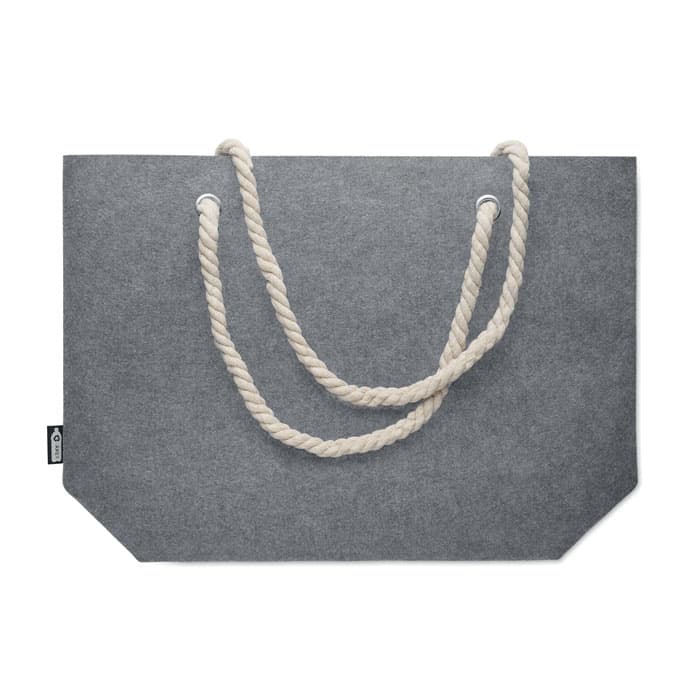 Strandtas of boodschappentas van RPET-vilt met koordhengsel. Viltdikte: 2 mm.