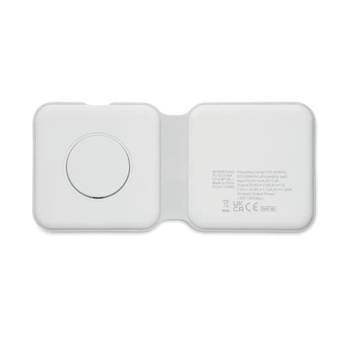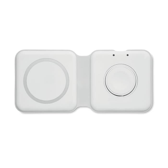 2-in-1 opvouwbaar oplaadstation in ABS. Inclusief draadloze oplader 15W en smartwatch-oplader (alleen Apple®).