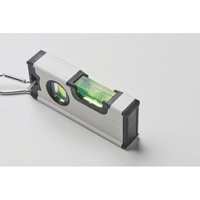 Mini magnetische dubbele waterpas in aluminium behuizing met karabijnhaak. De karabijnhaak is niet geschikt voor klimmen (niet voor professioneel gebruik).