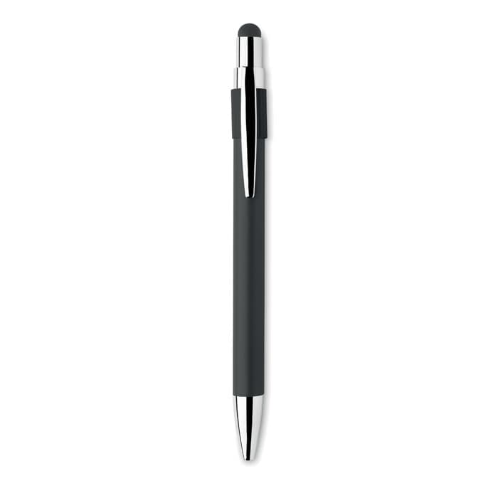 Stylus drukknop balpen van gerecycled aluminium met anti-stress spinner functionaliteit. Blauwe inkt.