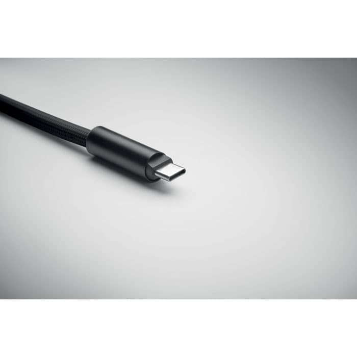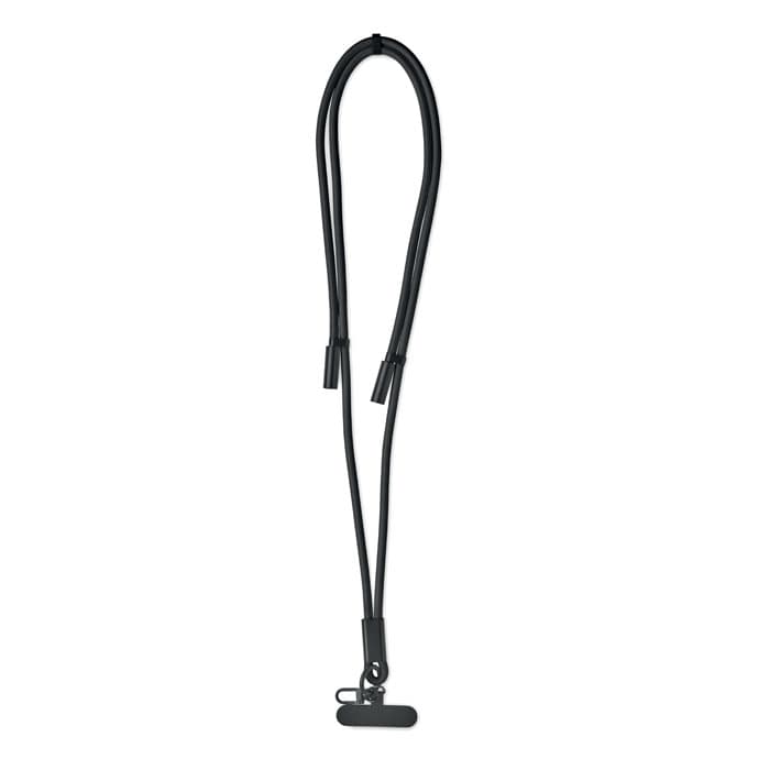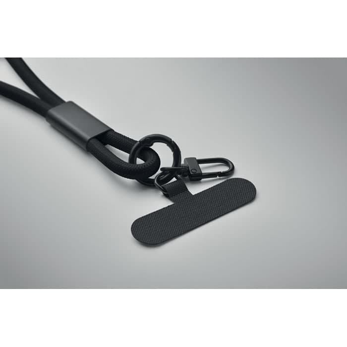 Telefoon lanyard met 60W oplaad- en datakabel type-C naar type-C in RPET met telefoonhouder en sleutelclip.