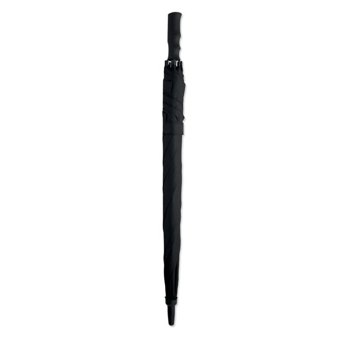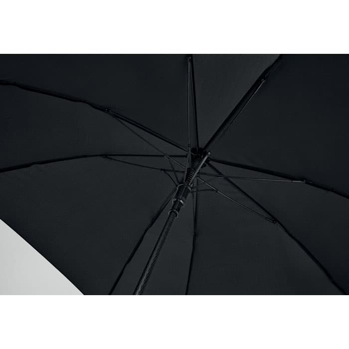 23 Inch windbestendige auto-open vierkante paraplu van 190T pongee polyester. Volledig fiberglas frame en baleinen, ABS handvat met rubberen afwerking.
