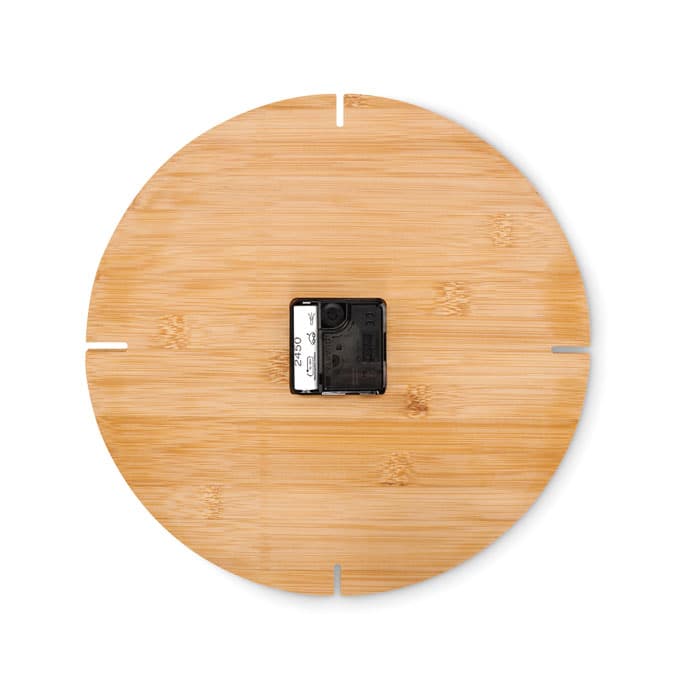 Bamboe wandklok met tik-tak systeem. 1 AA-batterij nodig, niet inbegrepen. Bamboe is een natuurlijk product, de kleur per artikel kan verschillen.